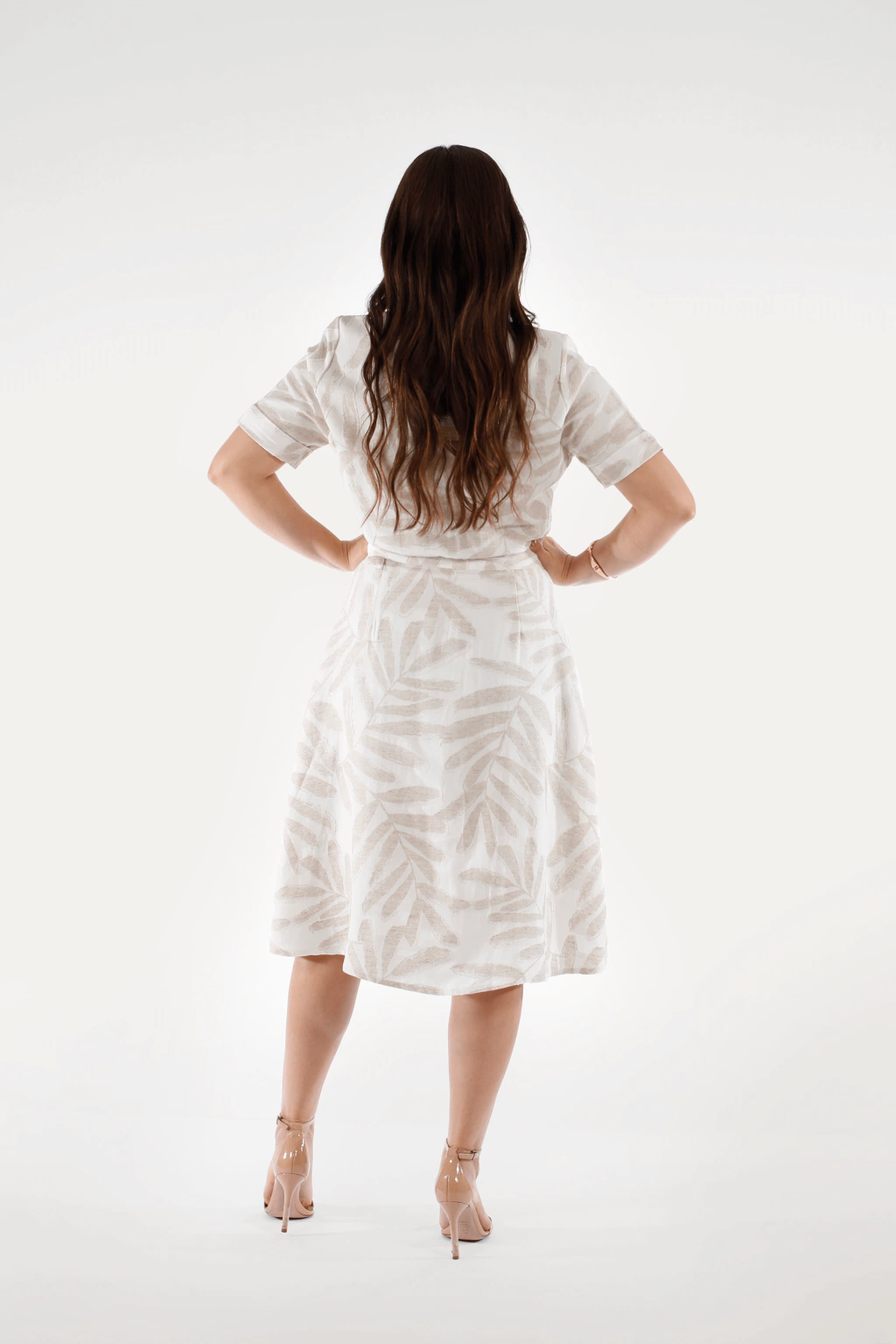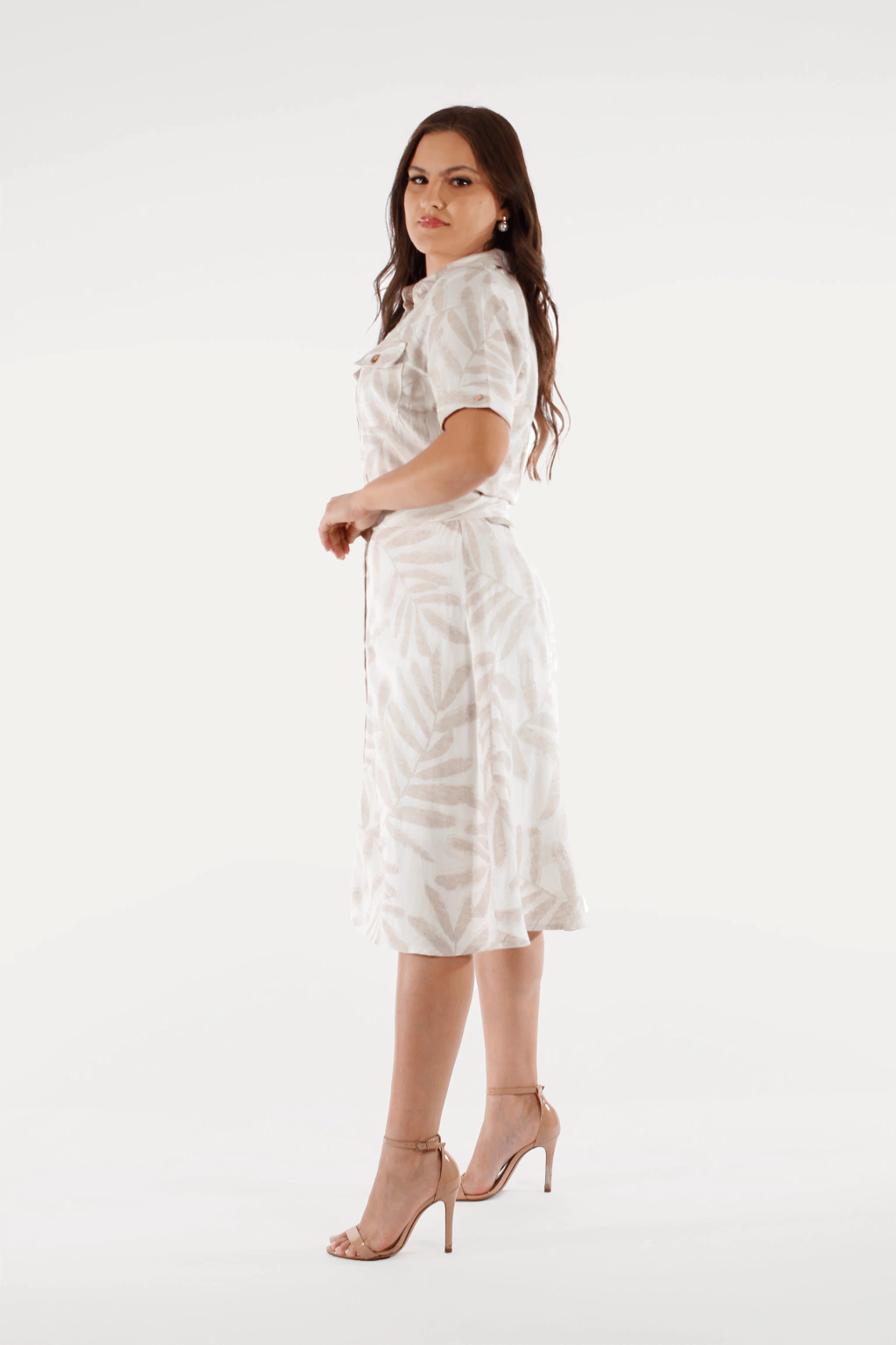 Vestido midi com modelagem chemise evasê, perfeito para quem busca elegância e versatilidade. Com mangas curtas e barra italiana, a peça traz um toque moderno e descontraído. A gola clássica e os bolsos no busto adicionam um charme atemporal. O cinto faixa com fivela permite ajustar a peça à cintura, realçando a silhueta. O fechamento frontal por botões funcionais e o elástico na cintura garantem conforto e praticidade, enquanto o forro proporciona um caimento impecável.