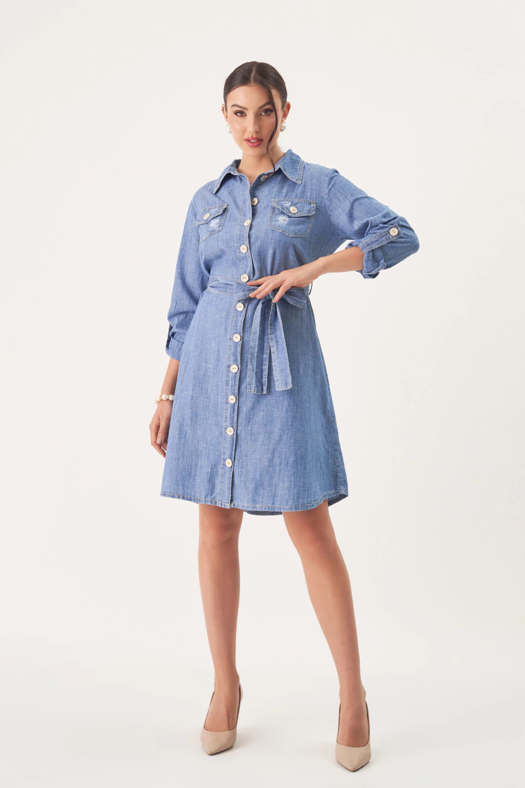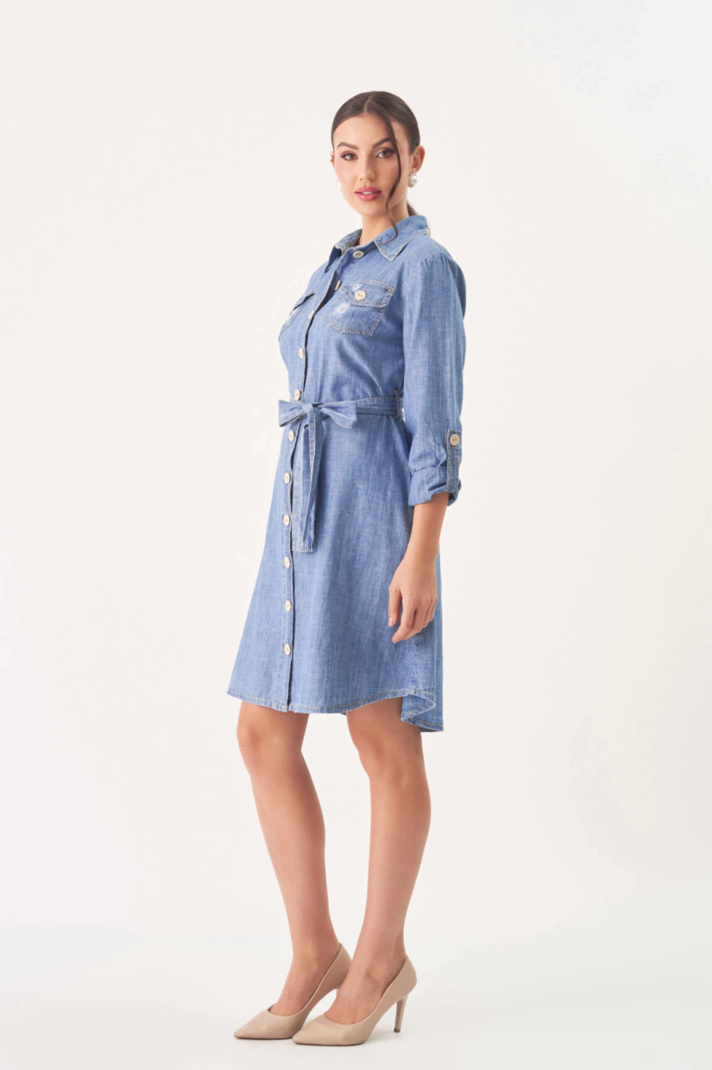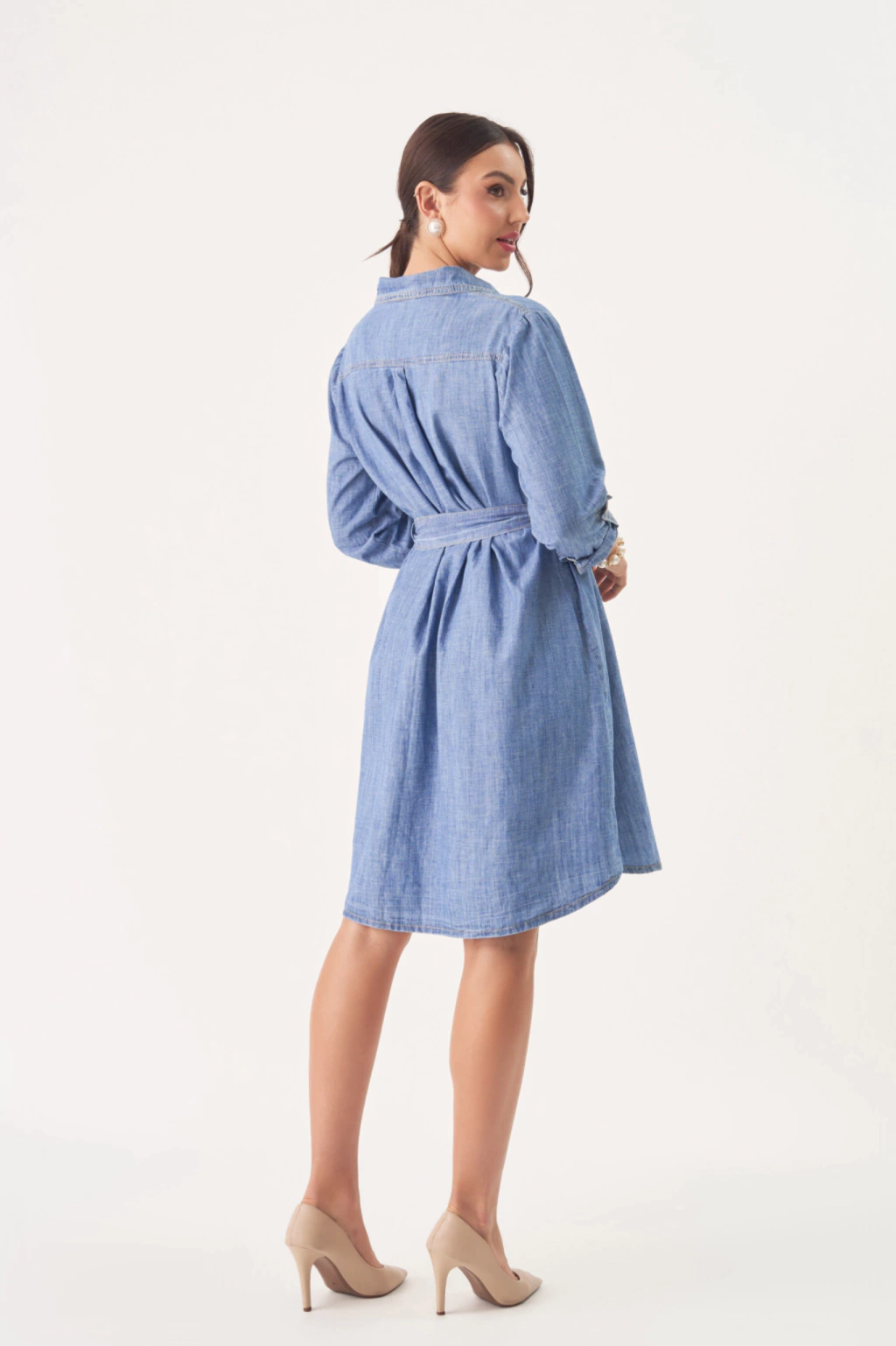 Com modelagem evasê e cinto faixa que valoriza a silhueta, as mangas longas com martingale dão um toque de estilo único. Com vista funcional e bolsos no busto, é uma peça versátil e estilosa para diversas ocasiões.